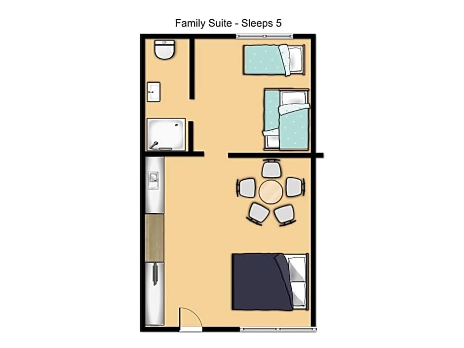 This 2-bedroom suite contains a queen-size bed in the master bedroom and 2 single beds in the 2nd bedroom, with the private bathroom off the 2nd bedroom. Featuring a flat-screen TV, the suite also includes a dining area and a basic kitchenette with a microwave, toaster and kettle.